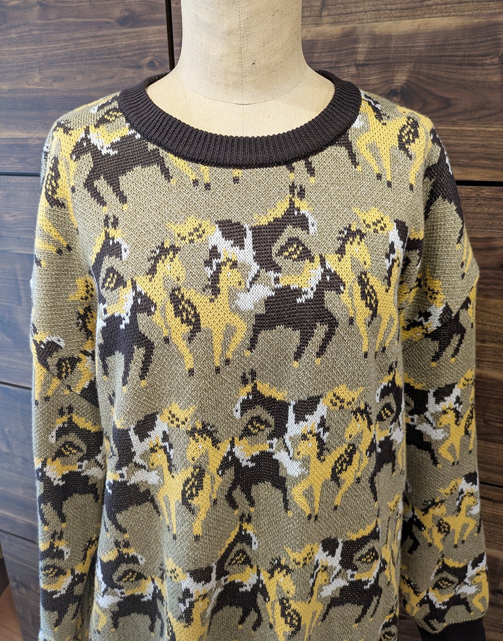 馬好きさんに大人気の、なかなか他ではなさそうな馬柄セーターです。
