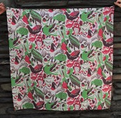 こちらはシルクスクリーン手捺染の染布から裁断し