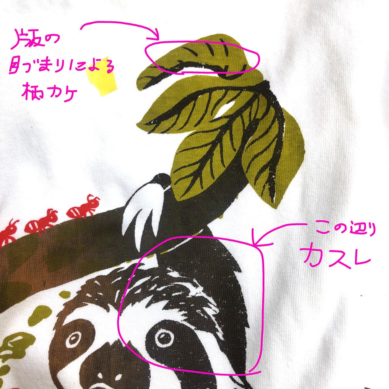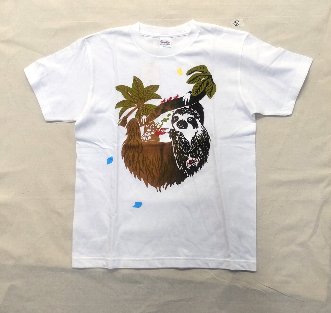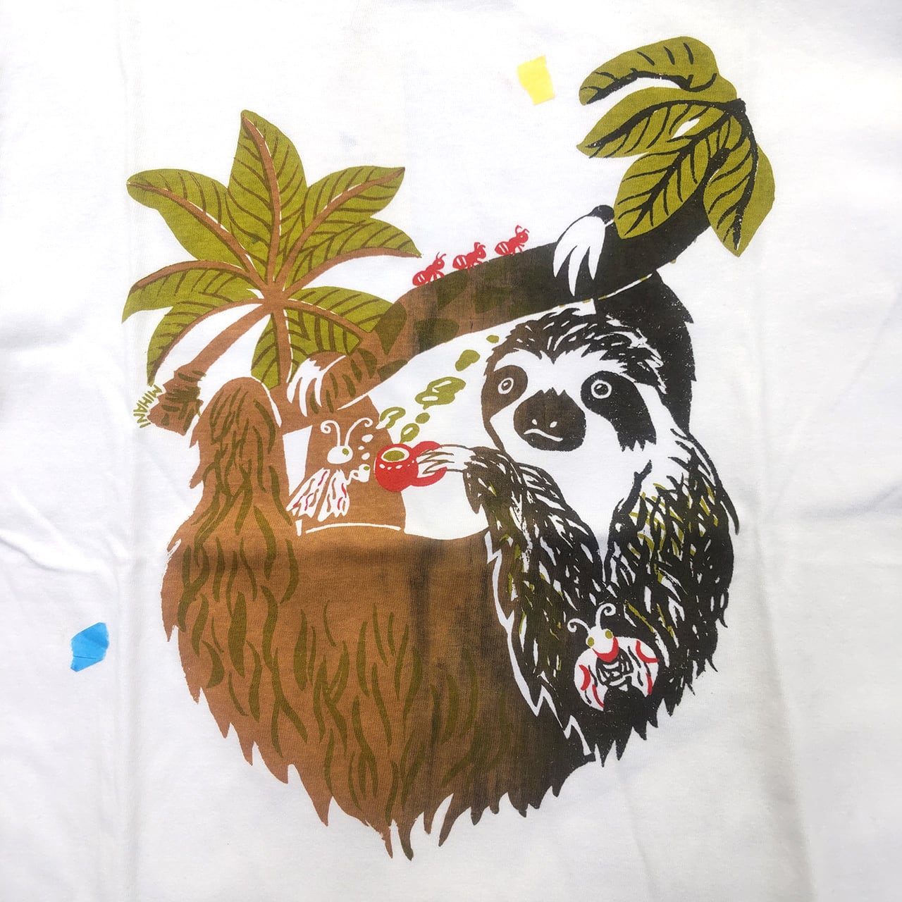 顔料手捺染Tシャツの「ナマケモノTeaシャツ」の柄のB品です。